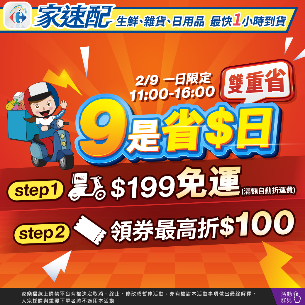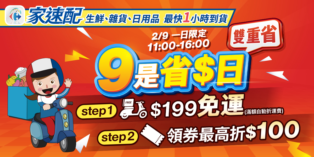- 當日時段11:00-16:00,結帳免輸入折扣碼,單筆折扣後滿$199即享免運費。