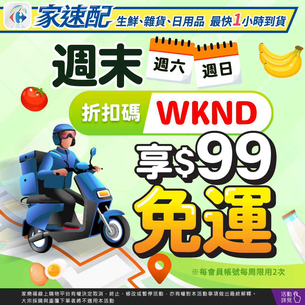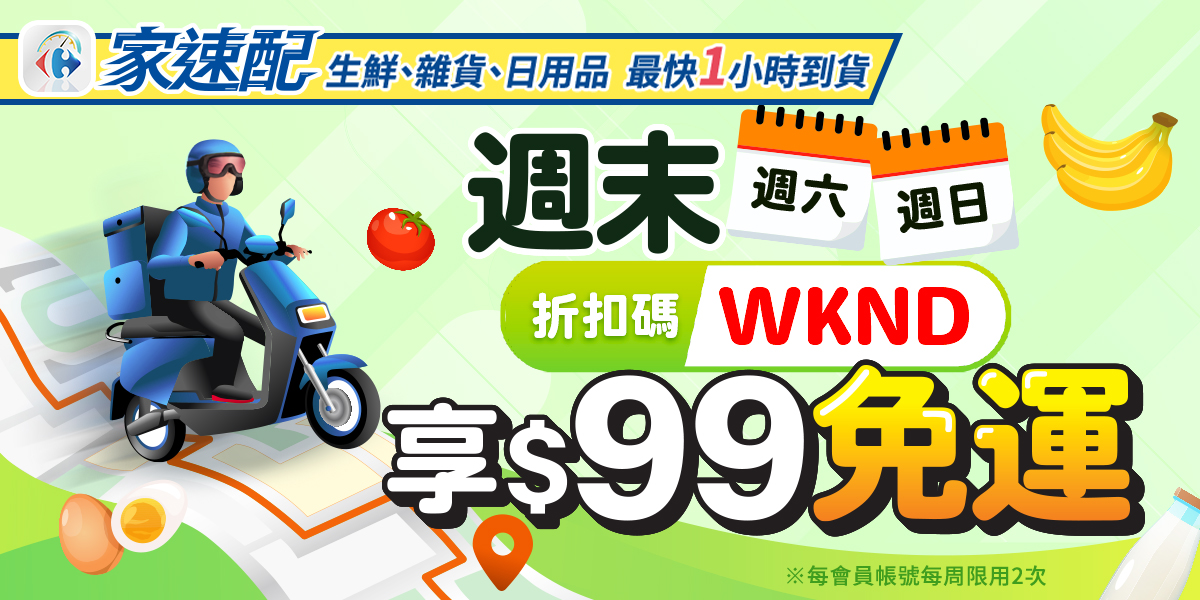 - 每週六、日為補貨日,結帳輸入折扣碼「WKND」,單筆折扣後滿$99享免運費。