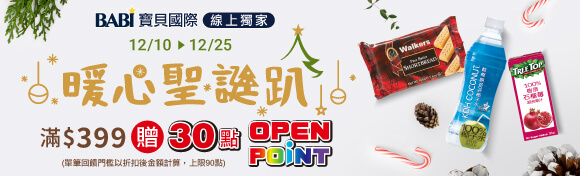 - 活動期間內,單筆購買指定洋芋片商品折扣後滿$299贈20點OPENPONT(單筆最高贈60點)